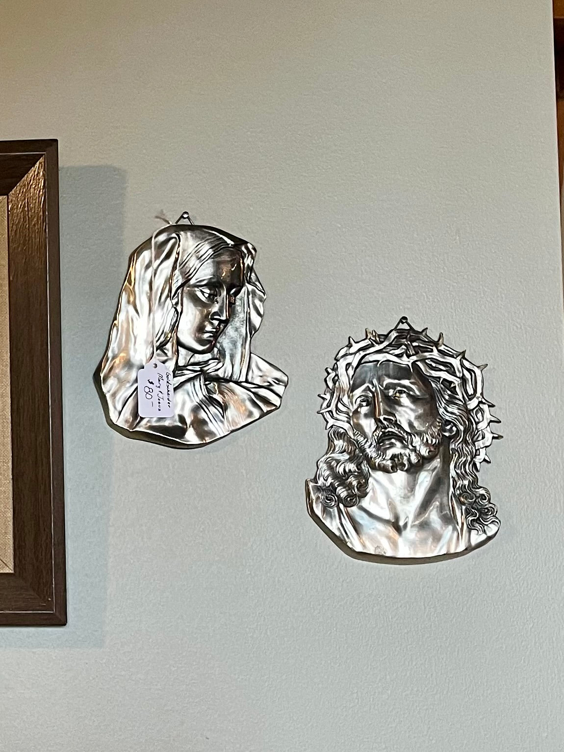 Expertly crafted by Goldscheider, these Mary and Jesus wall hangers will add a touch of spirituality to any living space. Made with high quality materials, they offer a timeless and elegant design. Perfect for believers and collectors alike, these hangers are a must-have addition to any home.